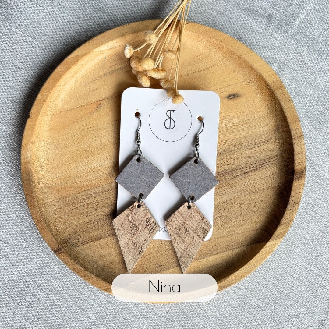 De Soft Sand leren oorbellen collectie combineert de rustgevende tinten beige en lichtgrijs voor een subtiele en verfijnde uitstraling. Een kalme, zachte mix die perfect past bij een minimalistische en tijdloze look. 🌾🤍