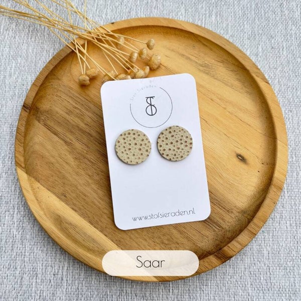 De Mocha Dream leren oorbellen collectie mixt warme bruintinten met zacht wit en een subtiel stippelpatroon. De natuurlijke kleuren en speelse details geven een gezellige, maar stijlvolle uitstraling, als een perfecte kop romige mokka op een rustige ochtend. 🍫💭
