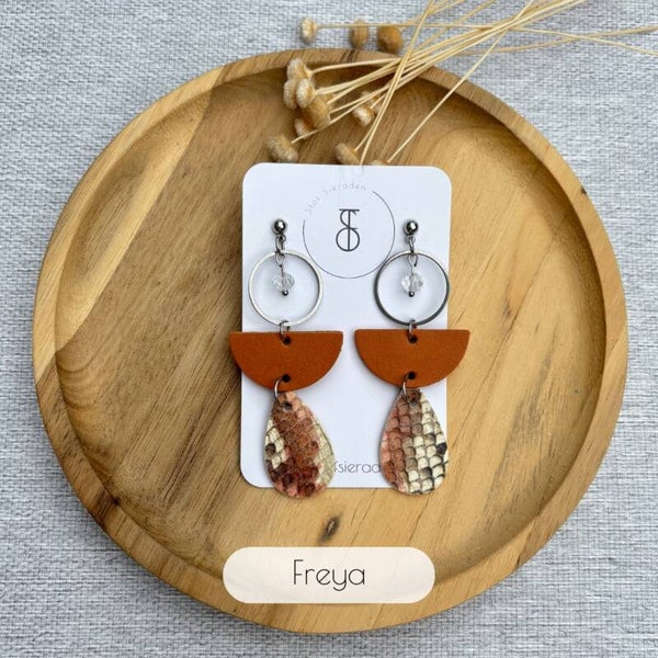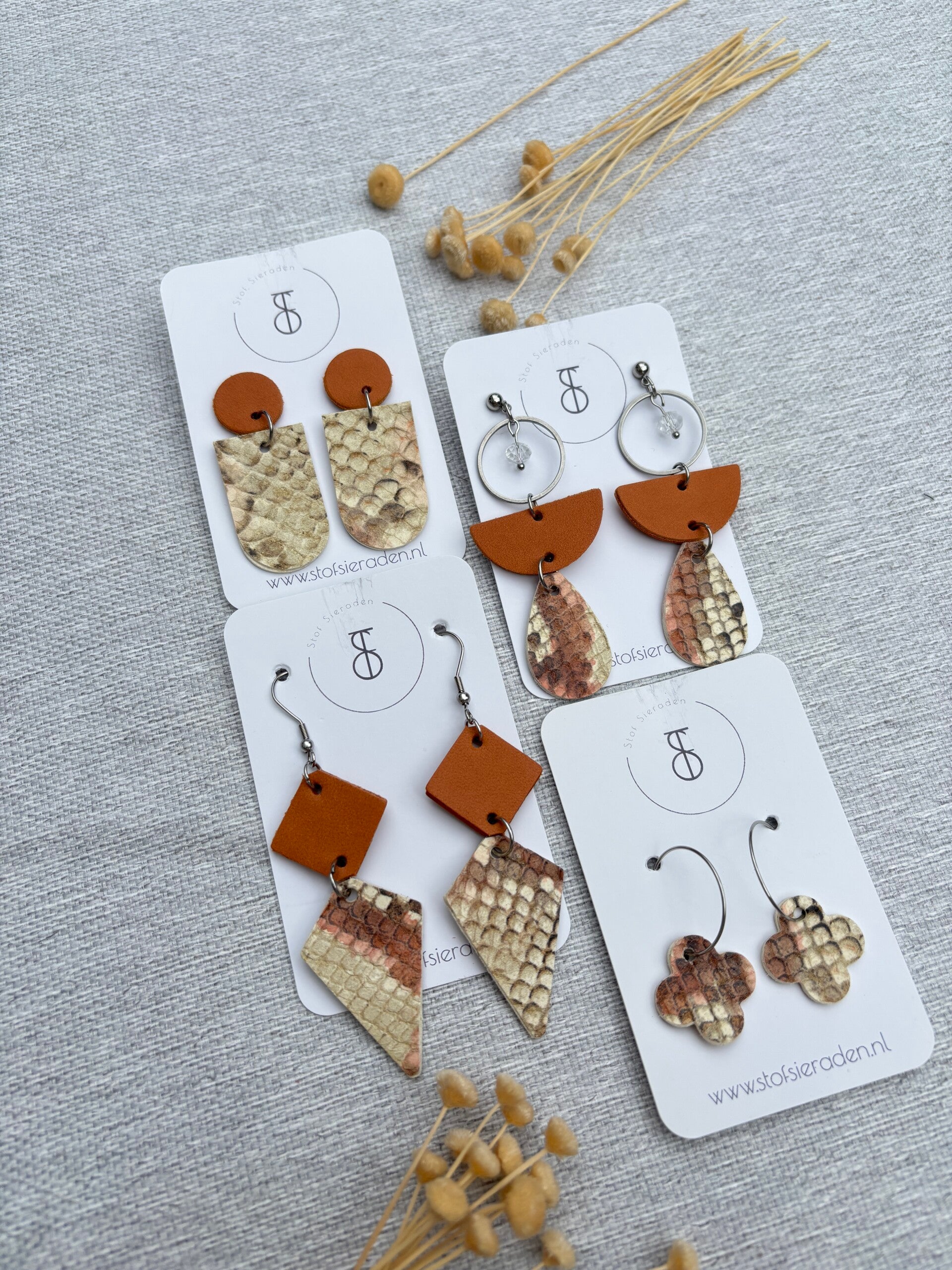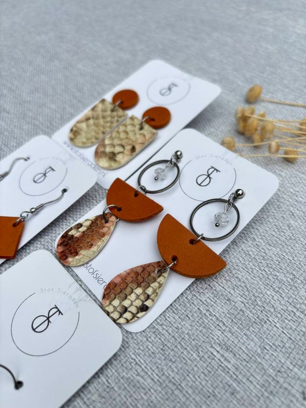 De Orange Viper leren oorbellen collectie combineert krachtig oranje met een stoer slangenpatroon. De vurige tint en gedetailleerde textuur zorgen voor een gedurfde, maar elegante uitstraling. Perfect voor wie een statement wil maken met een vleugje speelse wildheid. 🍊🐍