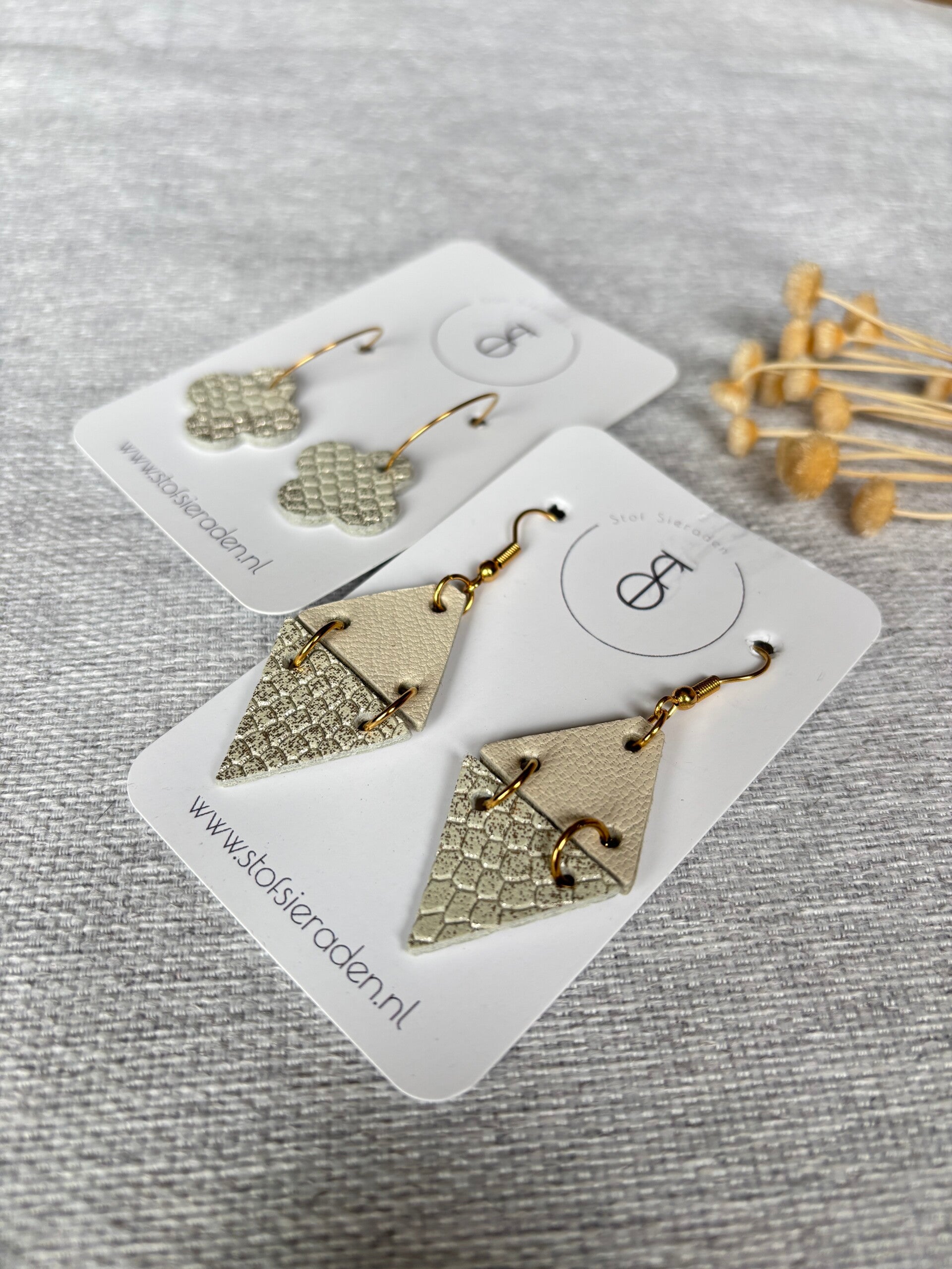 De Golden Glamour leren oorbellen collectie combineert beige met sprankelend goud. De glitters zorgen voor een subtiele schittering. ✨💛